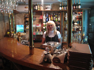 Back to the flat - tonight we plan on painting the town red (no pun intended), and 'pushing the boat out'!! We get changed into our Saturday night Kirovograd outfits and stroll down to the main center of town to a large beer garden to enjoy the atmosphere and chat about our little adventure. It's a pretty calm crowd, filled with men and women of all ages - I believe they are mostly locals as I doubt this is much of a tourist town. We enjoy a few beers and watch the girls strut their stuff while the boys appear not to notice. All partied out and ready to go home, we stroll through the park and come up to the big scary Russian hotel we've seen every day. They tell us not to go there to eat, but we decide to venture in for a look. We take the lift up to the second floor and walk into an empty bar with a scary looking Russian woman behind the bar. We order a beer and she invites us to the nice terrace where there are a few people enjoying the evening speaking very quietly - probably some KGB spy activity going on. It's an interesting vibe and we make jokes about it and sing Simon and Garfunkel songs;"...careful his bow tie is really a camera...". Actually it's a bit sad that they don't get many people here as it's a very nice bar and a huge hotel! One more for the road and then we stumble home, admiring the architecture, taking silly pictures of me with the statue of the original mayor (he has a chair right next to him for that purpose!) and Emma with her Opera house marble. Up the four flights of stairs, we fall into bed for a good night's rest.